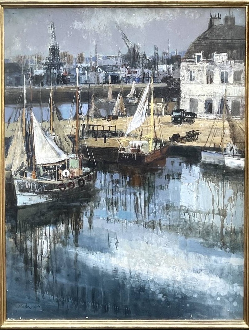 Vue d'un port. Huile sur toile par Makoto Masuda